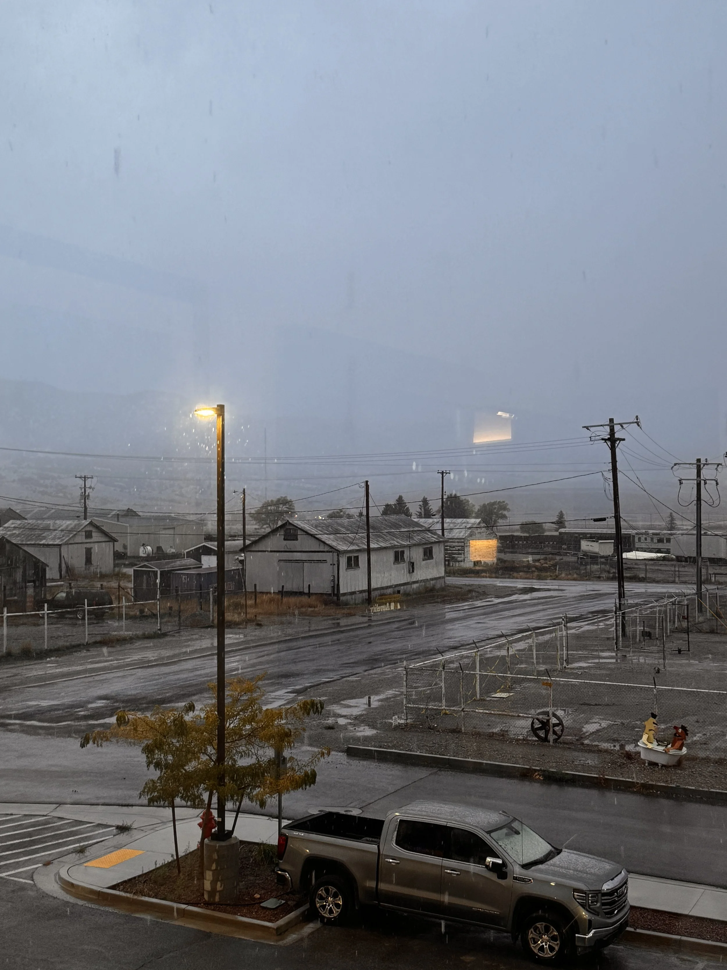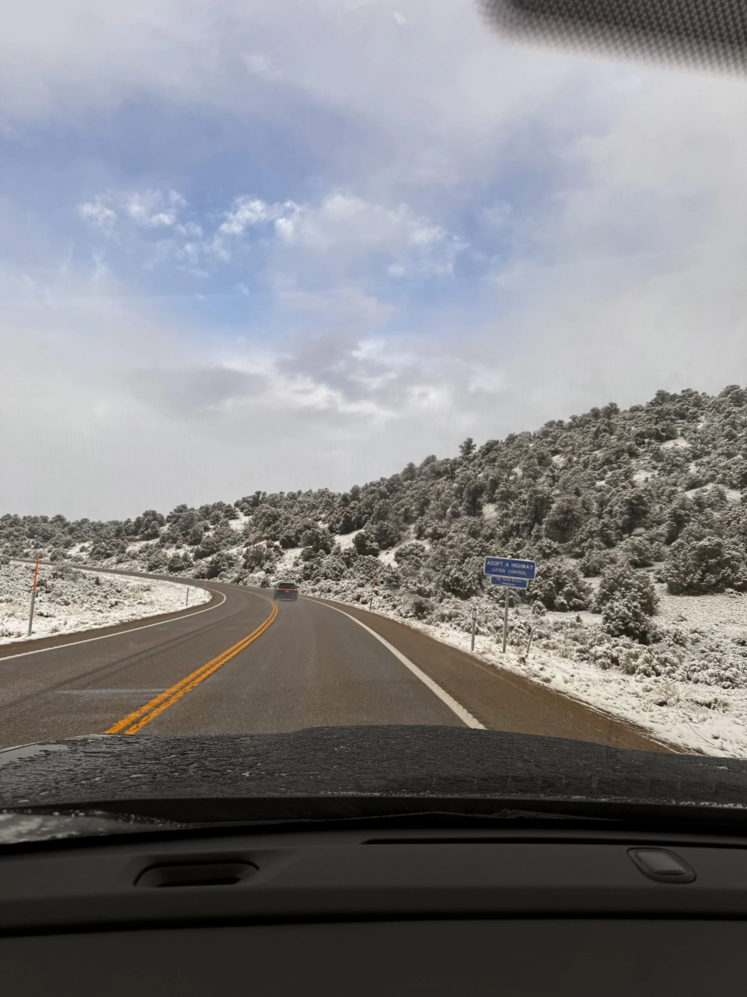 While I’d seen snow in the forecast for Ely, I was still surprised to see it snowing when we woke up. It continued to snow even as we started our drive. Luckily it was not so cold that the roads were icy and the snow covered mountains that we drive through were so pretty.