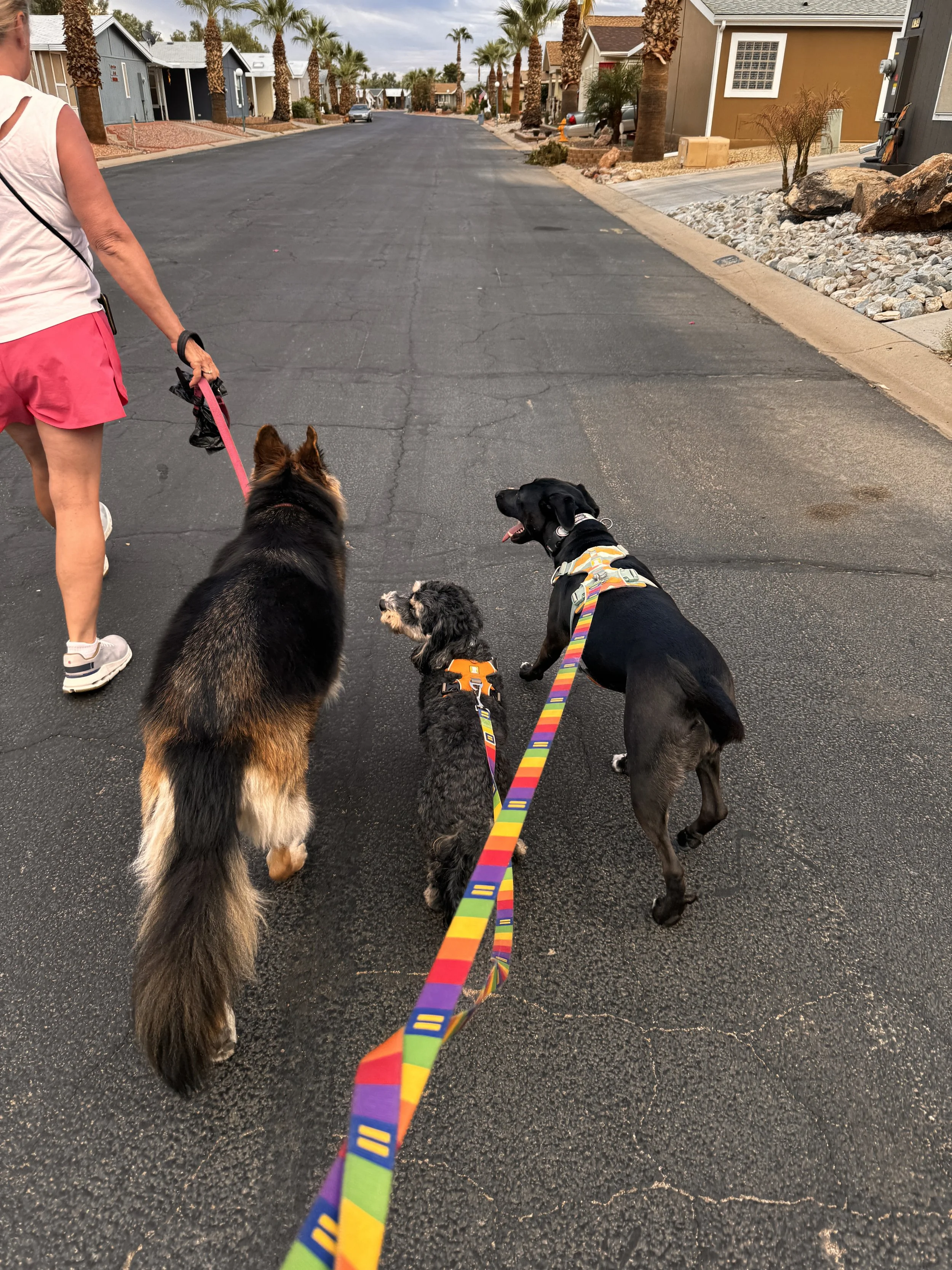 Melissa and I walk our dogs every morning, Penny is in heaven with her new BFF Molly. To watch them play every morning makes me so happy, she is loving it here. Chewie is doing well, he’s just not as social with other dogs, so as long as he has my lap to seek refuge, he’s happy. I know that it has been good for all three of us to start the day with consistent exercise. They have gotten used to the jets, so that is a big relief. I have a different neighbor down the street who does triathlons and wants to connect to train. I’m sure that she will leave me in the dust, but it will be good to have someone to get me motived to train. I’m planning on my first bike ride this next week which will be a big milestone. I’m also going to get back into golf and start playing pickleball. So many fun things to do!